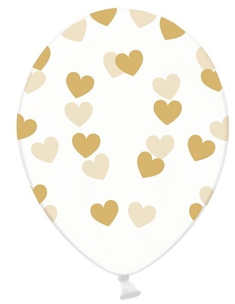 PartyDeco Átlátszó lufik arany szivecskékkel 6 db