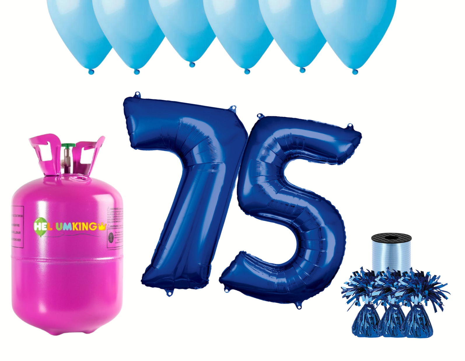 HeliumKing Hélium parti szett 75. születésnapra kék színű lufikkal