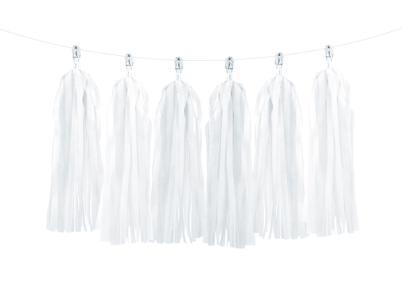 PartyDeco Girland bojtokkal - Fehér