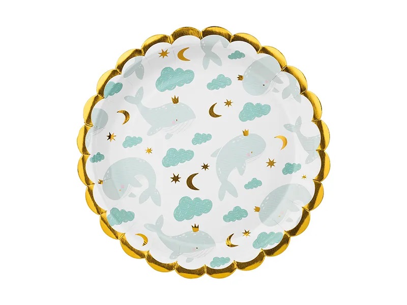 PartyDeco Tányér bálna nyomattal 18 cm, 6 db